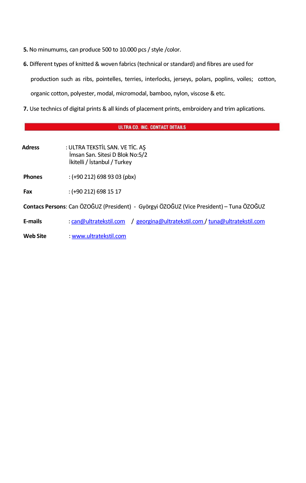 While our focus mainly has been towards Europe and America, ULTRA possesses the flexibility and capacity to achieve a client’s vision and requirements, no matter which part of the world the customer represents. Using our experience and creativity, the company strives to meet the expectations and objectives of the fashion market.